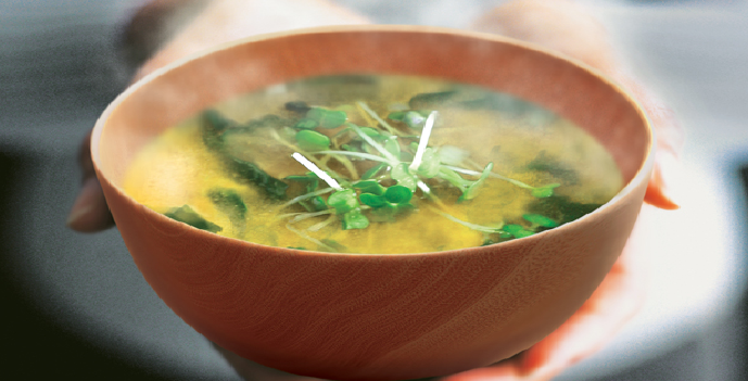 La zuppa di miso rappresenta uno dei cardini fondamentali di ricerca quotidiana di equilibrio attraverso l'alimentazione, tipica giapponese. In verità è molto più di un piatto tipico, è il cibo “di casa” di ogni famiglia, preparato in modo diverso da ogni mamma, presente in tutti i pasti come fosse una "medicina" utile a mantenersi sani e vitali. La zuppa di miso viene preparata con tre verdure: una radice allungata (per esempio la carota), una verdura tonda (come la cipolla) e delle foglie verdi (come quelle del cavolo cinese, della catalogna, delle foglie di ravanello o di carota). A queste tre verdure si aggiungono il miso, l’alga wakame e un tocco finale a scelta: del cipollotto fresco, del prezzemolo oppure del succo di zenzero. Secondo la macrobiotica, la presenza di tre verdure dalla forma e dalla direzione di crescita differenti, rende la zuppa di miso vitale, carica di energia in movimento: l’energia della radice si muove verso il basso, quella della verdura tonda in tutte le direzioni e quella delle foglie verdi si muove verso l’alto. Questo crea grande movimento nel nostro corpo, completato dai vitali fermenti del miso e dai sali minerali dell’alga.