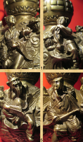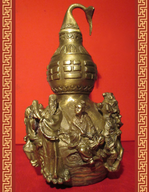 La zucca, all'interno della tradizione cinese, è il simbolo della medicina farmacologica, non solo per le sue proprietà curative, ma anche perché anticamente, una volta svuotata, veniva usata come contenitore per i farmaci. In questo caso rappresenta il contenitore dell'elisir dell'immortalità. Attorno ad essa tutti e otto gli immortali a cui sono associati gli otto trigrammi...
